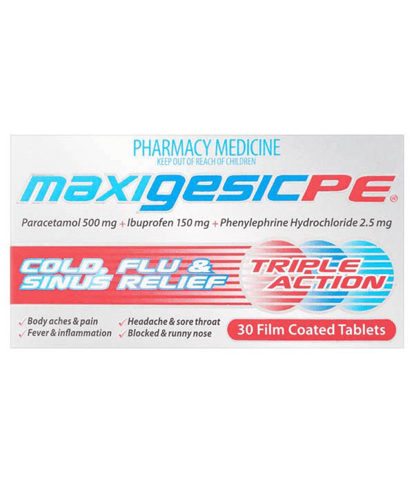 MAXIGESIC PE® provides triple action cold, flu and sinus relief.